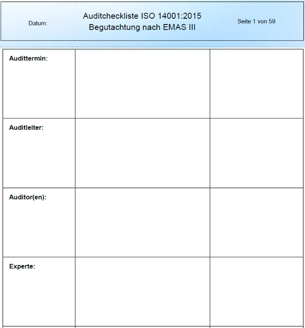 11231 Auditcheckliste ISO 14001 und EMAS