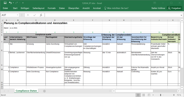 Eine Reihe von nützlichen Arbeitshilfen unterstützen Sie bei der Integration der Complianceanforderungen in Ihr bestehendes Managementsystem. Arbeitshilfen: von: |