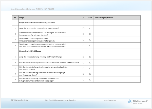 | • | ISO 56002: Innovationsmanagement – Innovationsmanagementsystem – Leitfaden, |