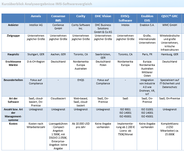 Im Rahmen des Moduls „Softwareanwendungen” der Studiengänge „Integrierte Managementsysteme”/„Integriertes Management” der Hochschule Zittau/Görlitz wurden die gegenwärtigen Anbieter von IMS-Software untersucht und die Analyseergebnisse kriteriengestützt aufbereitet. Dieser Artikel bietet eine Zusammenfassung der Untersuchungsergebnisse und einen Überblick über den aktuellen Markt der IMS-Software.