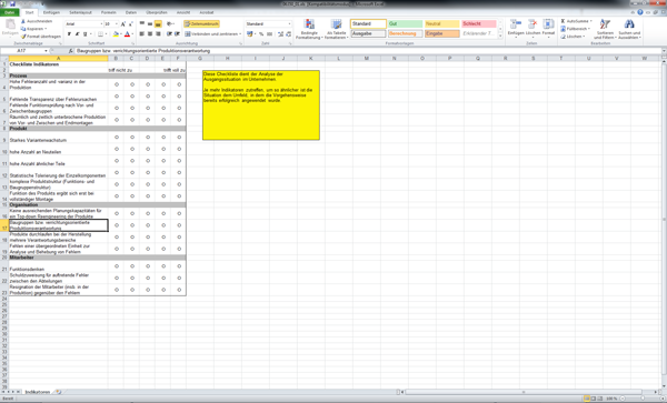 Der Beitrag verdeutlicht, wie eine solche Methode gestaltet werden kann und welche Voraussetzungen hierfür zu schaffen sind. Eine der Voraussetzungen ist, eine klare Verantwortung für die Analyse und Gestaltung der unterschiedlichen Prozesse und Schnittstellen zu definieren. Schon in der ISO 9001 ist KVP (Kontinuierlicher Verbesserungsprozess) ein wesentliches Element, um das Vertrauen in die Qualitätsfähigkeit von Lieferanten zu begründen. Arbeitshilfen: von: |