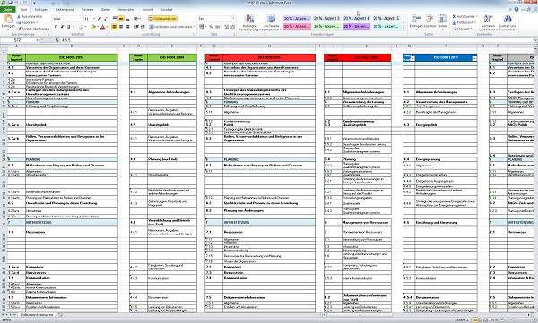 In der Regel besteht ein IMS im Unternehmen aus zwei bis vier Normen, z. B. einem Qualitätsmanagementsystem nach ISO 9001, einem Umweltmanagementsystem nach ISO 14001 und/oder EMAS, einem Arbeitssicherheitsmanagement nach OHSAS 18001 bzw. ISO 45001 und ergänzend einem Energiemanagementsystem nach ISO 50001. Wir beschränken uns in diesem Beitrag der besseren Übersichtlichkeit halber auf diese Normen, weitere sind aber gängige Praxis und hier dargelegte Punkte sind darauf übertragbar. Weitere Normen sind aufgrund der Nähe zur „Mutter aller Normen”, der Qualitätsmanagementnorm ISO 9001, und aufgrund der eingeführten High Level Structure der neuen Revisionen leichter zu integrieren. Wir gehen auf diese Punkte im Folgenden ein.