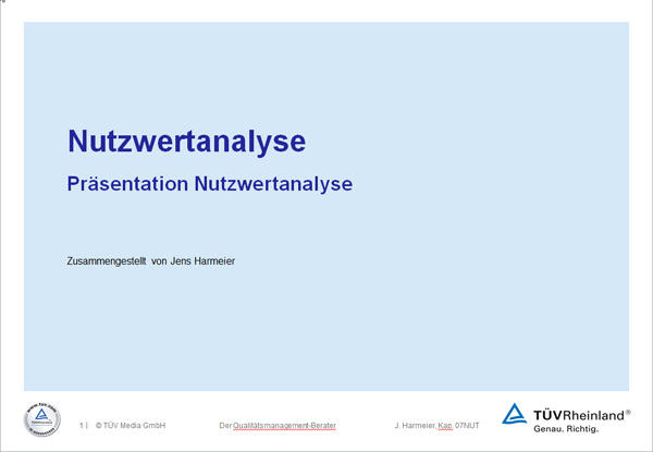 Ein Formblatt zur Nutzwertanalyse sowie Präsentationsvorlagen unterstützen Sie bei der Umsetzung im Betriebsalltag. Arbeitshilfen: von: |