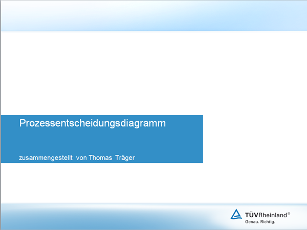 Das Prozessentscheidungsdiagramm betrachtet systematisch, welche Probleme oder Fehler bei der Umsetzung eines geplanten Vorhabens auftreten können und welche Gegenmaßnahmen dann zu ergreifen sind. Es handelt sich damit um ein Werkzeug zur vorbeugenden Qualitätssicherung.
