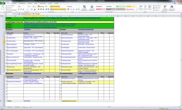 | • | Ziel des Kennzahlensystems: mehr Transparenz in der Unternehmensentwicklung sowie Erhalt von frühzeitigen Hinweisen auf mögliche Probleme, um schneller gegensteuern zu können. |